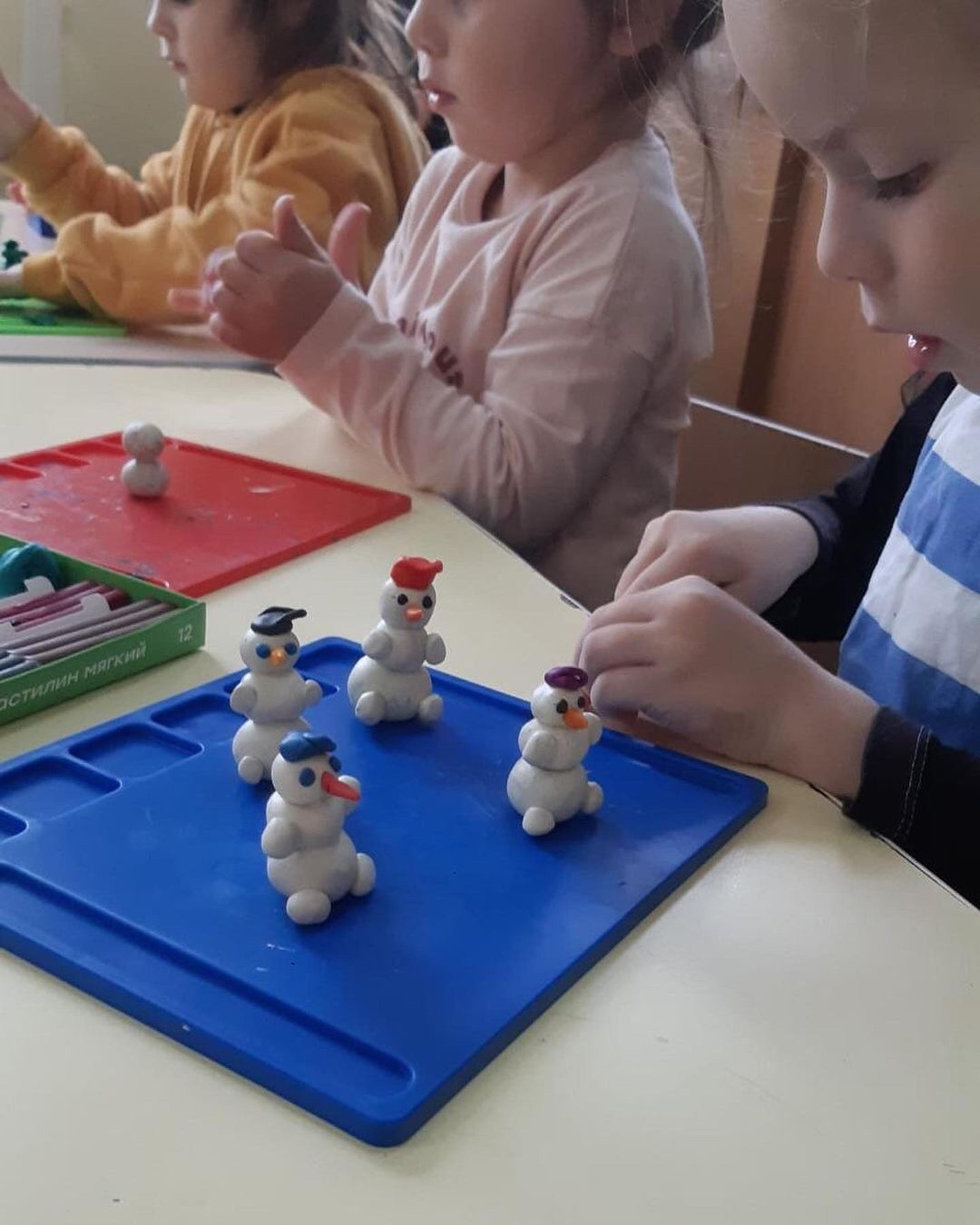 Художественно- эстетическое развитие ( лепка из пластилина) "Снеговик" Цель:формировать представление о временах года (зима), связях между временами года и погодой.Младшая группа «Гномики»В
